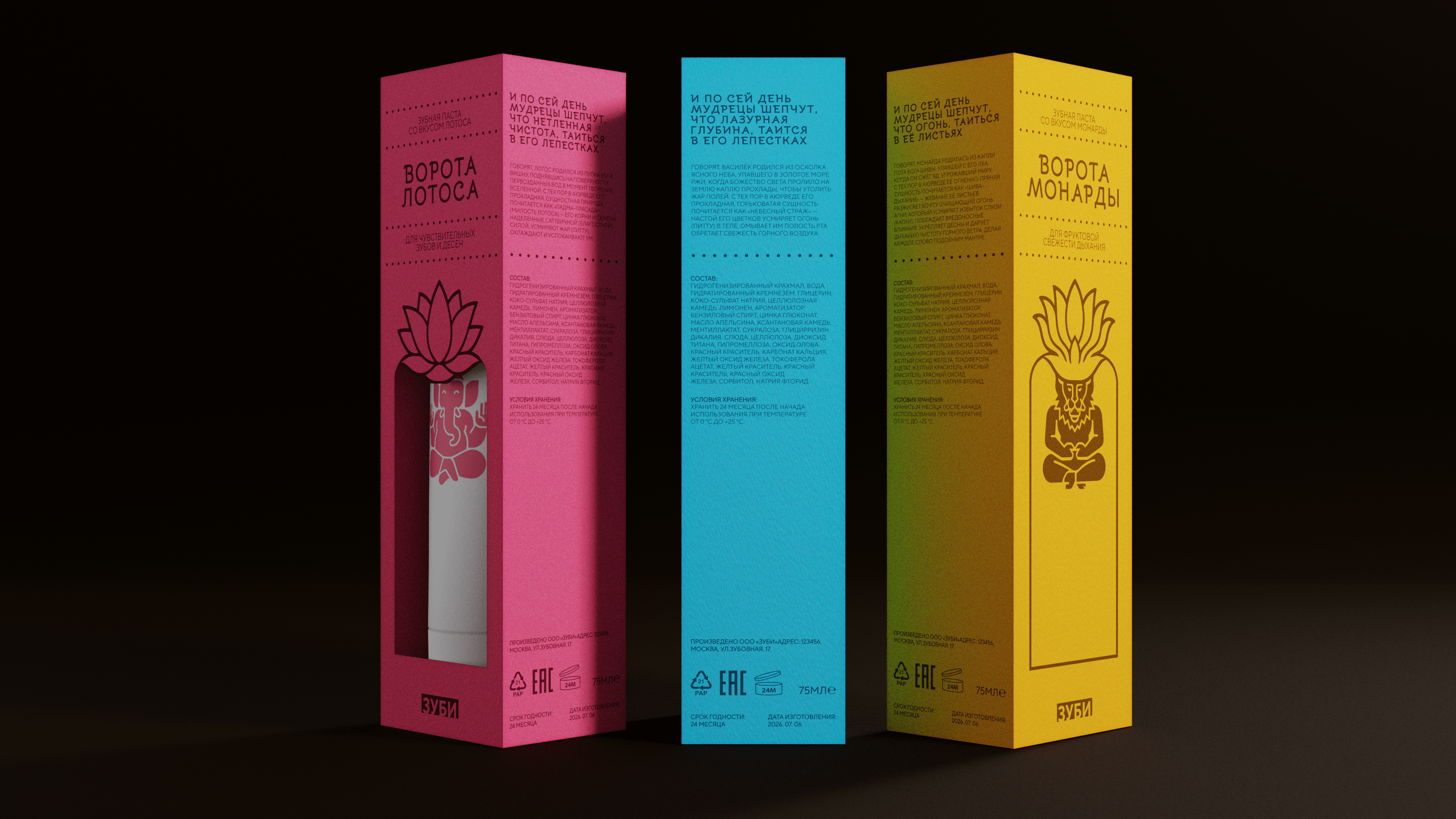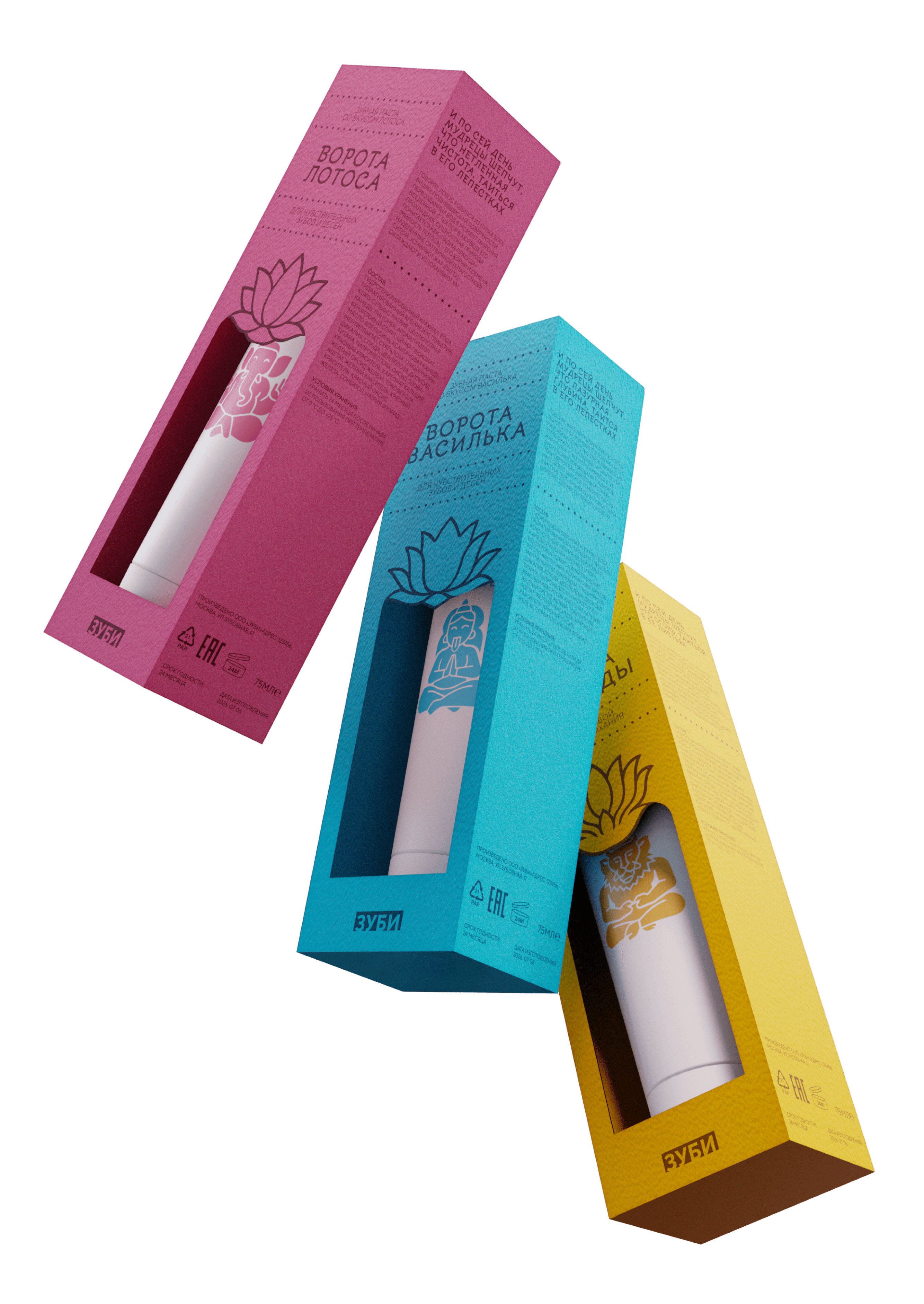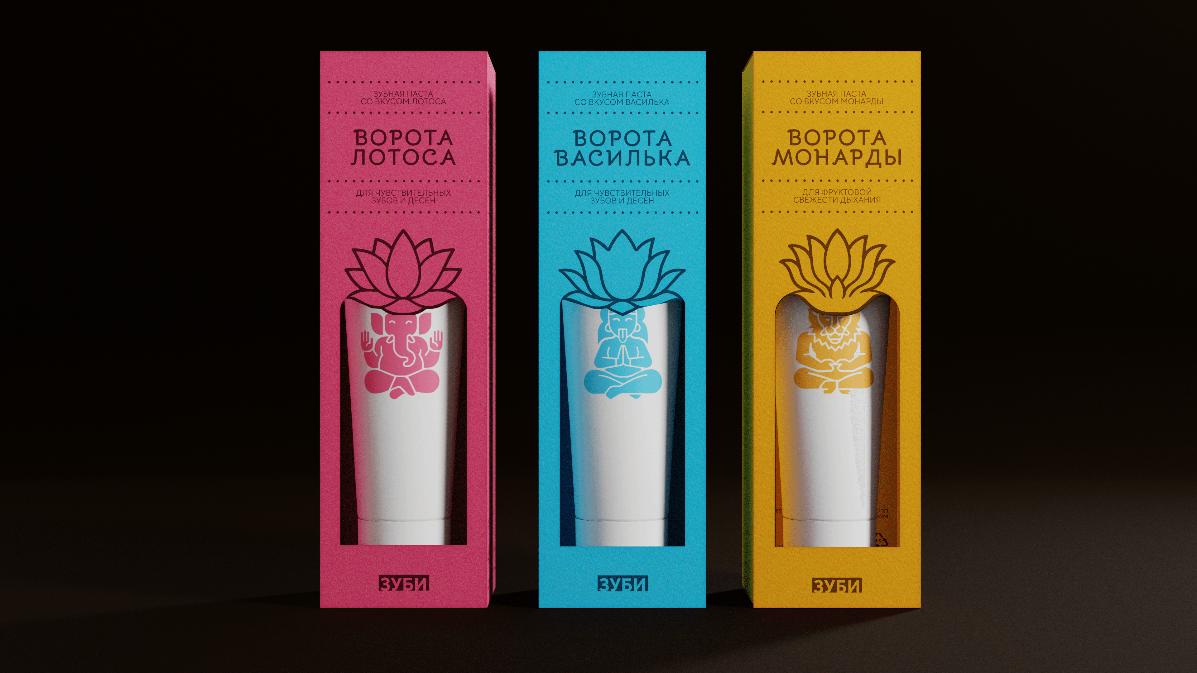 Упаковка линейки зубных паст вдохновлена арками в буддийских храмах, сама коробка выполнена с вырубкой, символизируя вход в храм гигиены и чистоты