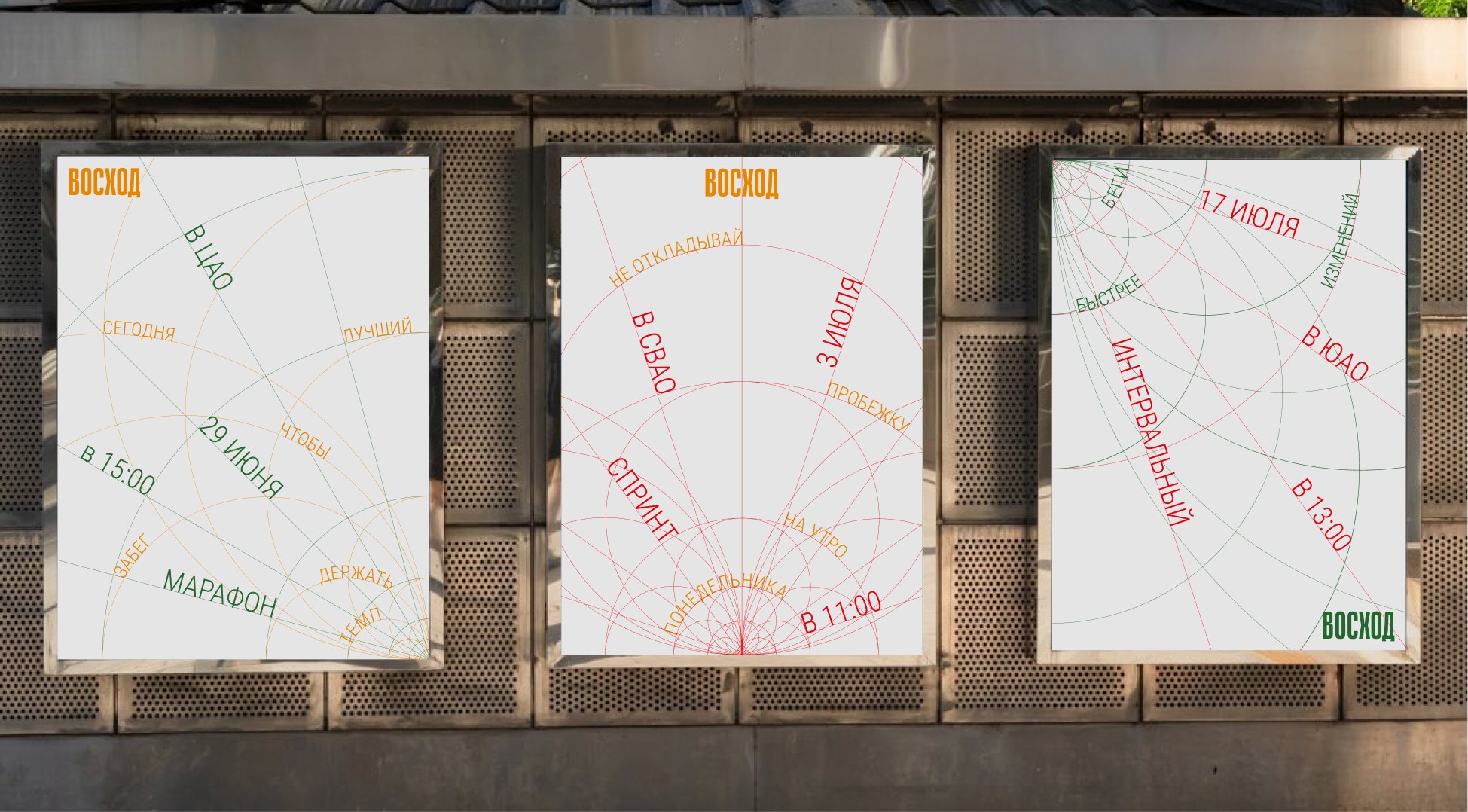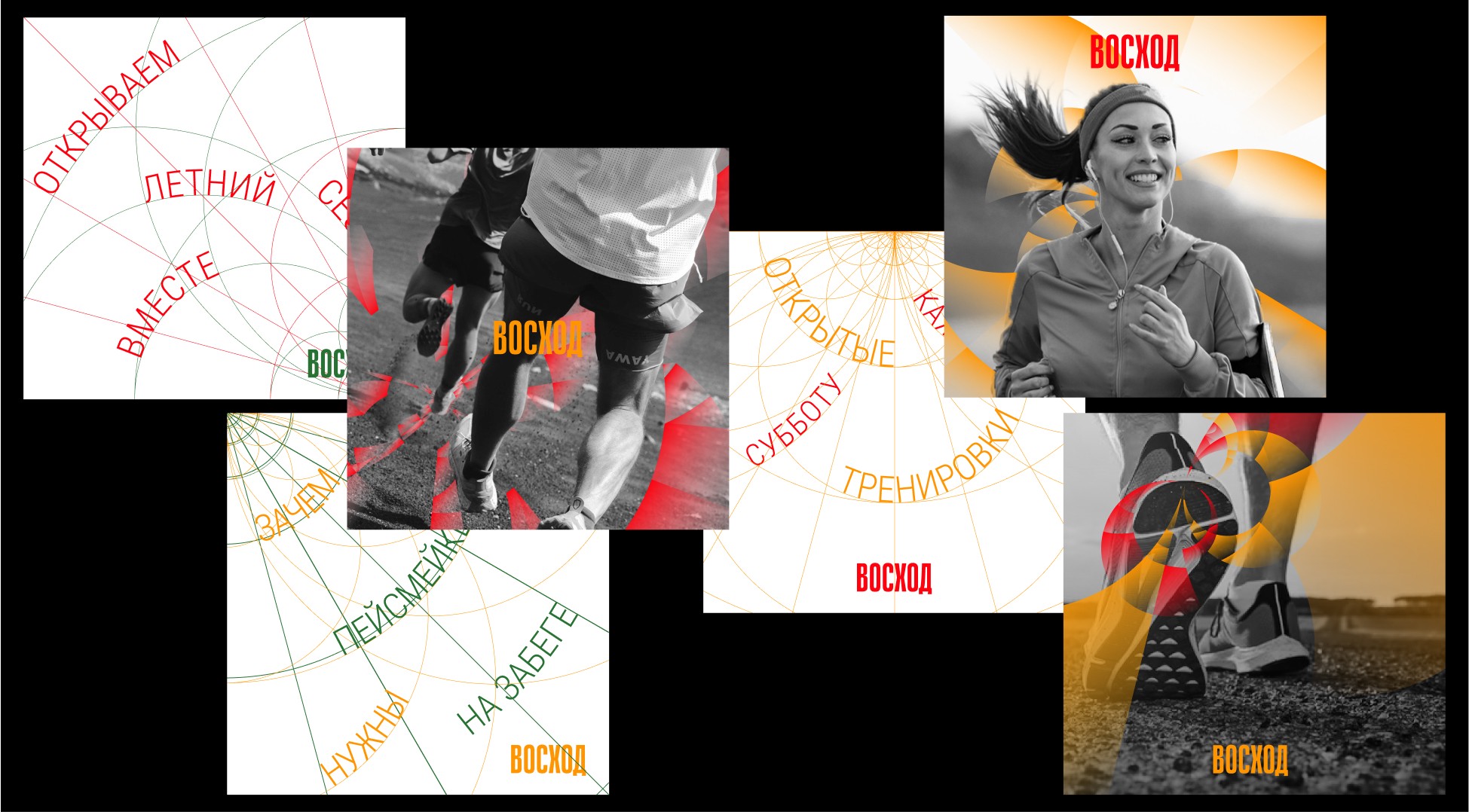 Беговой клуб, заинтересованный в изучении не только внутреннего мира спортсменов, но и пространства, которое окружает их. В основу графического языка легла модульная графика, основанная на явлении гало и карты Москвы